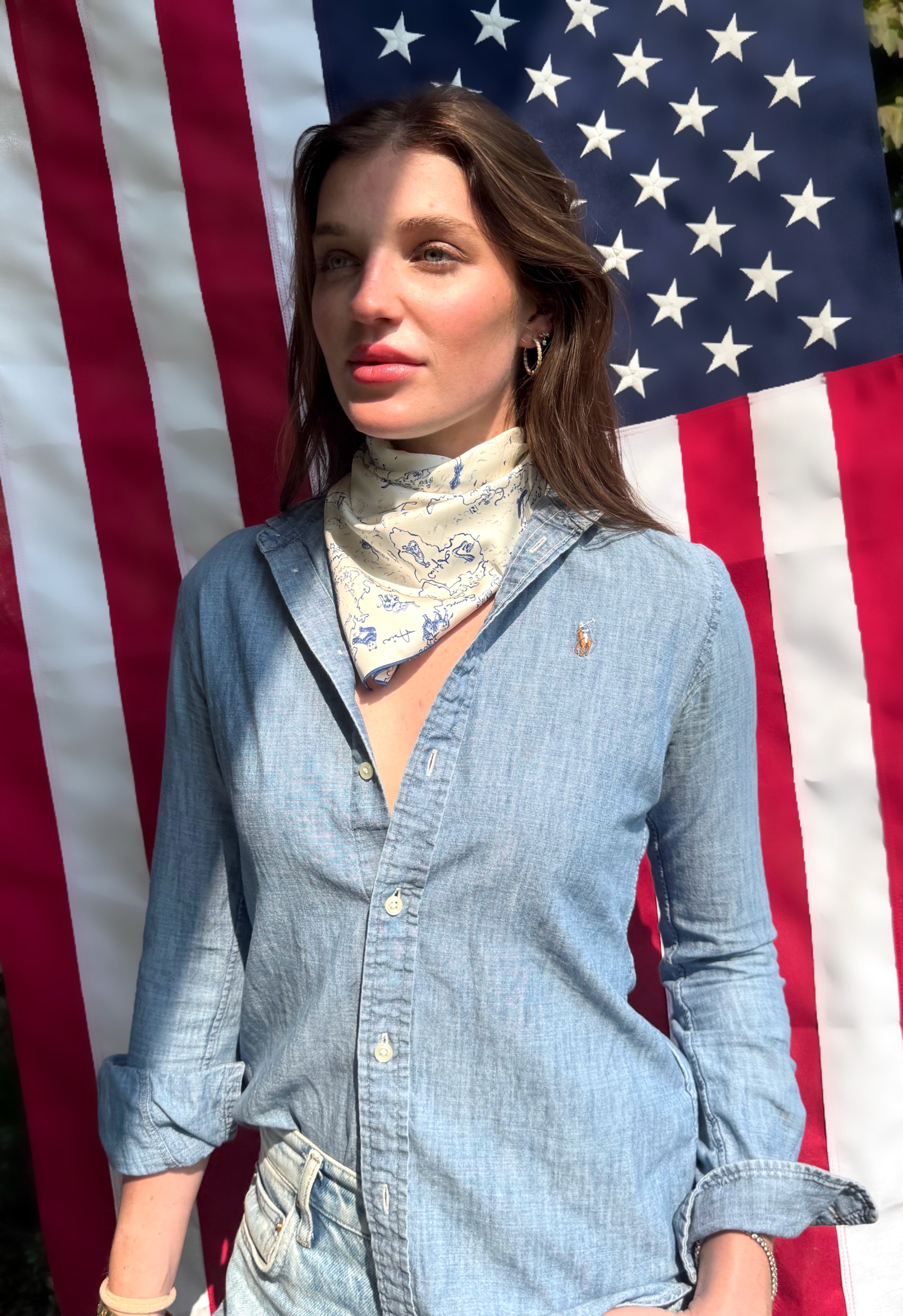 A silk tableau of wonder, this scarf reimagines the world map with hand-drawn creatures native to each land and playful life in the seas. Inspired by old-world cartography yet rendered with a lighthearted, artful touch, it’s both accessory and story—where art meets exploration.